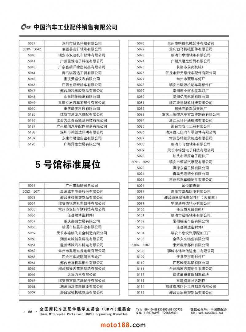 第86屆(2023秋)全國(guó)摩托車(chē)及配件展示交易會(huì)-廣州站參展單位名錄