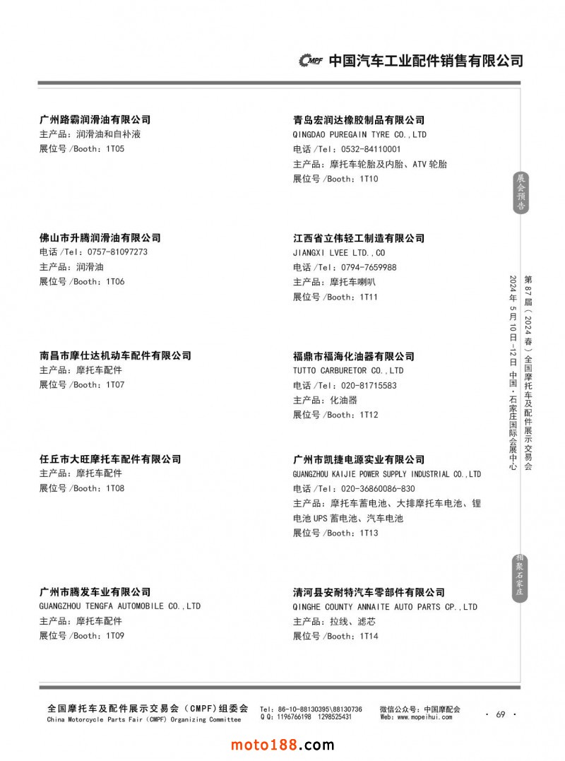 第86屆(2023秋)全國摩托車及配件展示交易會-廣州站參展企業(yè)信息