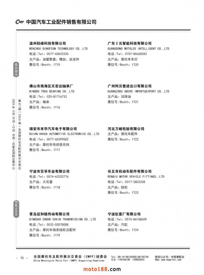 第86屆(2023秋)全國摩托車及配件展示交易會-廣州站參展企業(yè)信息