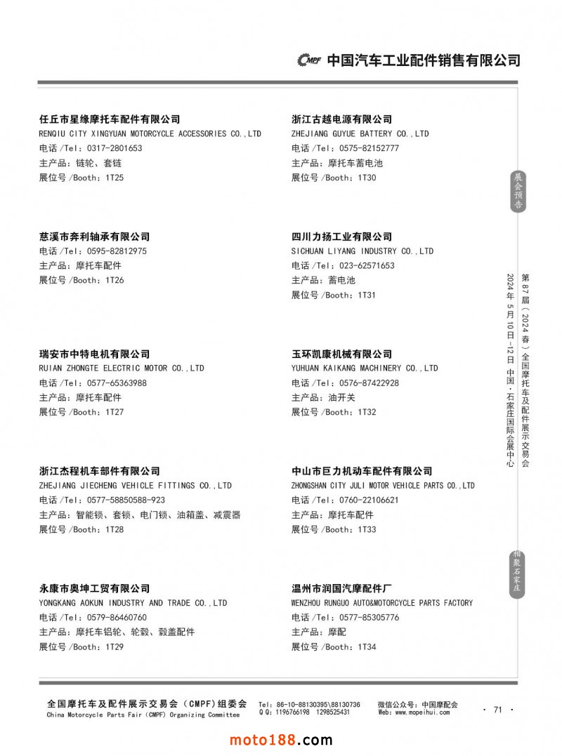 第86屆(2023秋)全國(guó)摩托車及配件展示交易會(huì)-廣州站參展企業(yè)信息