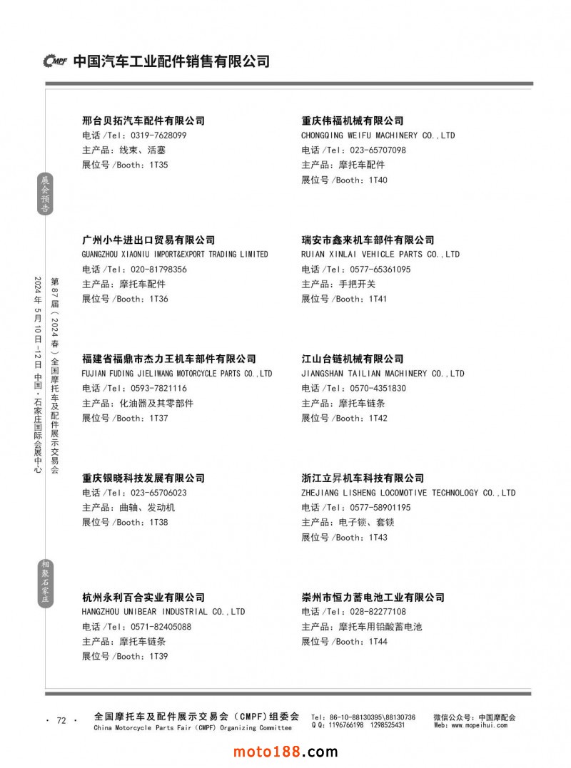 第86屆(2023秋)全國摩托車及配件展示交易會-廣州站參展企業(yè)信息