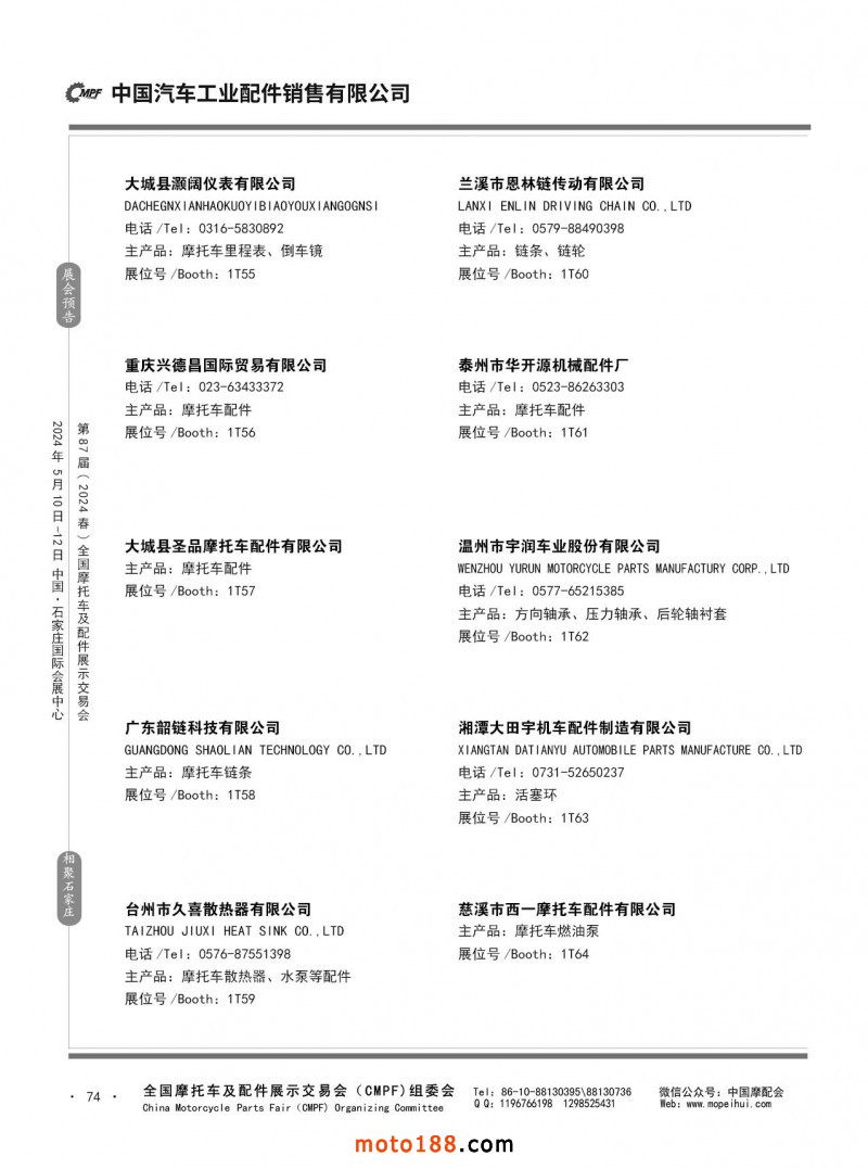 第86屆(2023秋)全國摩托車及配件展示交易會-廣州站參展企業(yè)信息