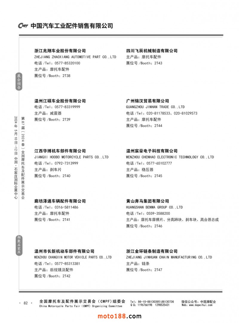 第86屆(2023秋)全國(guó)摩托車(chē)及配件展示交易會(huì)-廣州站參展企業(yè)信息