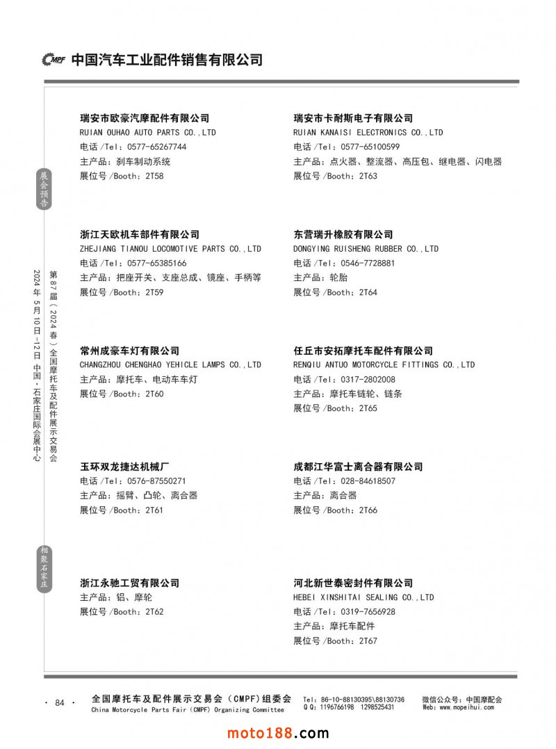 第86屆(2023秋)全國摩托車及配件展示交易會-廣州站參展企業(yè)信息