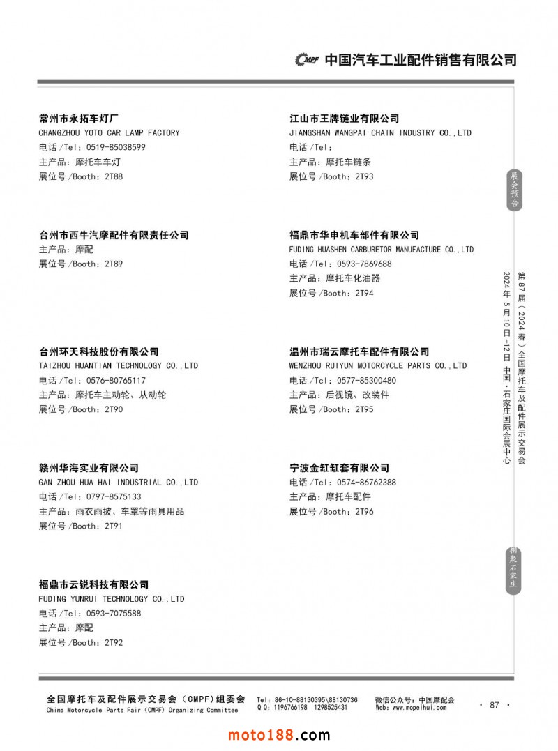 第86屆(2023秋)全國摩托車及配件展示交易會-廣州站參展企業(yè)信息