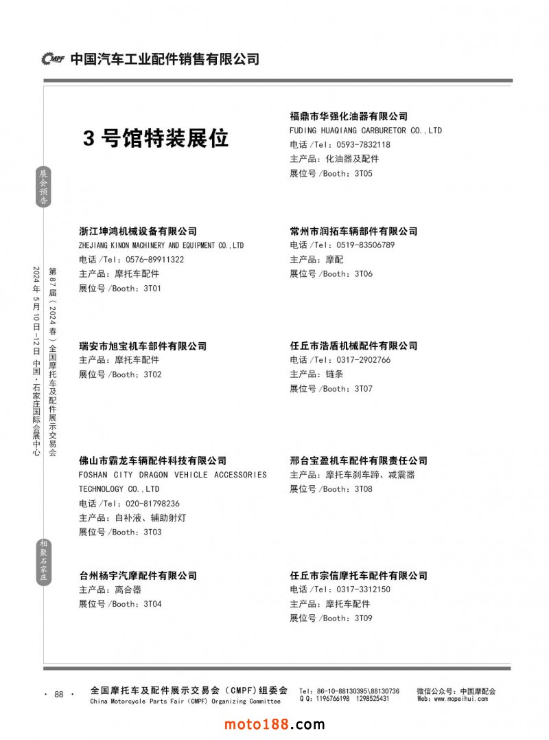 第86屆(2023秋)全國摩托車及配件展示交易會-廣州站參展企業(yè)信息