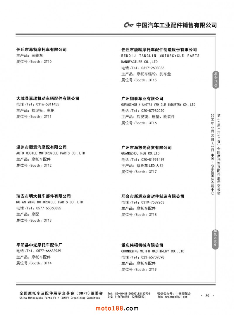 第86屆(2023秋)全國摩托車及配件展示交易會-廣州站參展企業(yè)信息