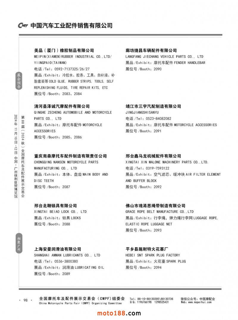 內(nèi)56-132 第87屆(2024春)全國摩托車及配件展示交易會(huì)-石家莊站參展企業(yè)信息