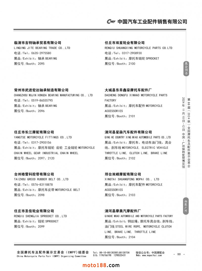 內(nèi)56-132 第87屆(2024春)全國摩托車及配件展示交易會-石家莊站參展企業(yè)信息