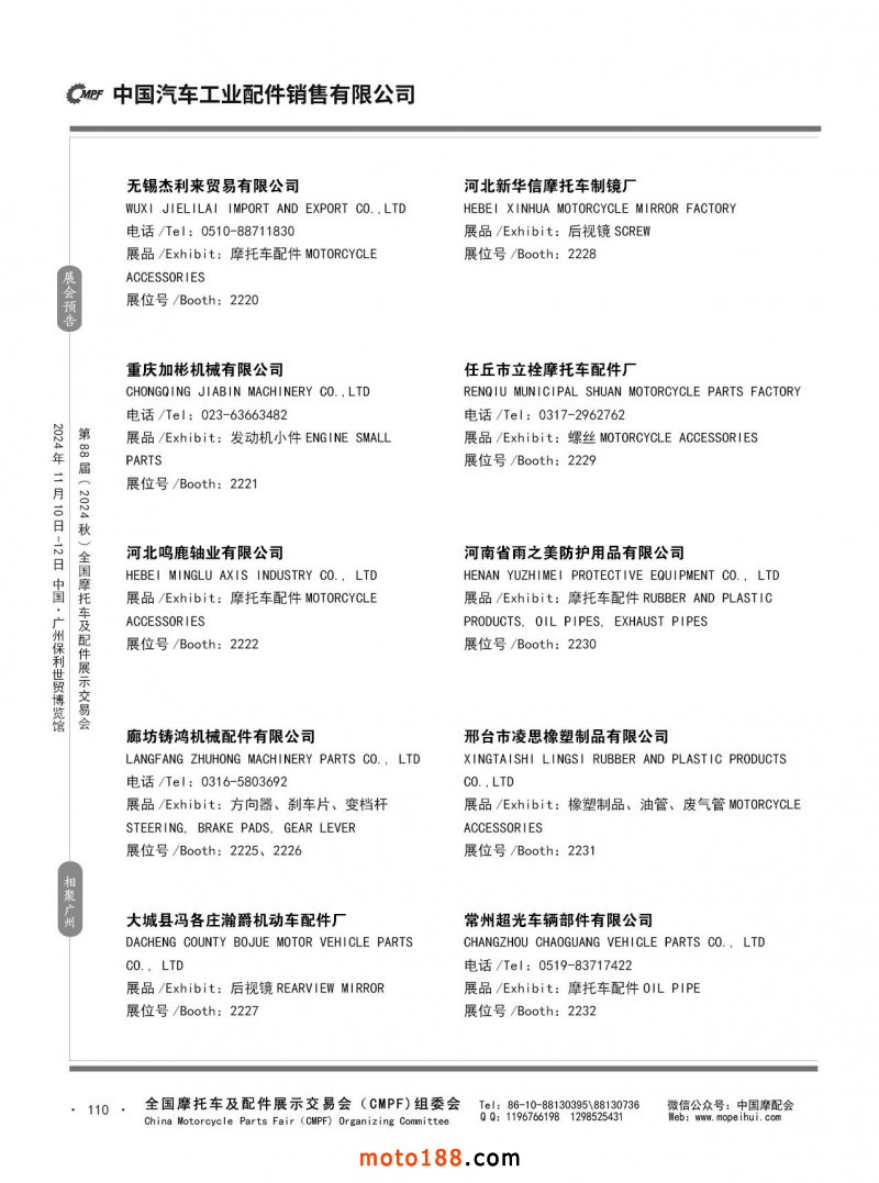 內(nèi)56-132 第87屆(2024春)全國(guó)摩托車(chē)及配件展示交易會(huì)-石家莊站參展企業(yè)信息