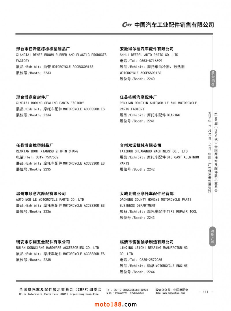 內(nèi)56-132 第87屆(2024春)全國摩托車及配件展示交易會-石家莊站參展企業(yè)信息