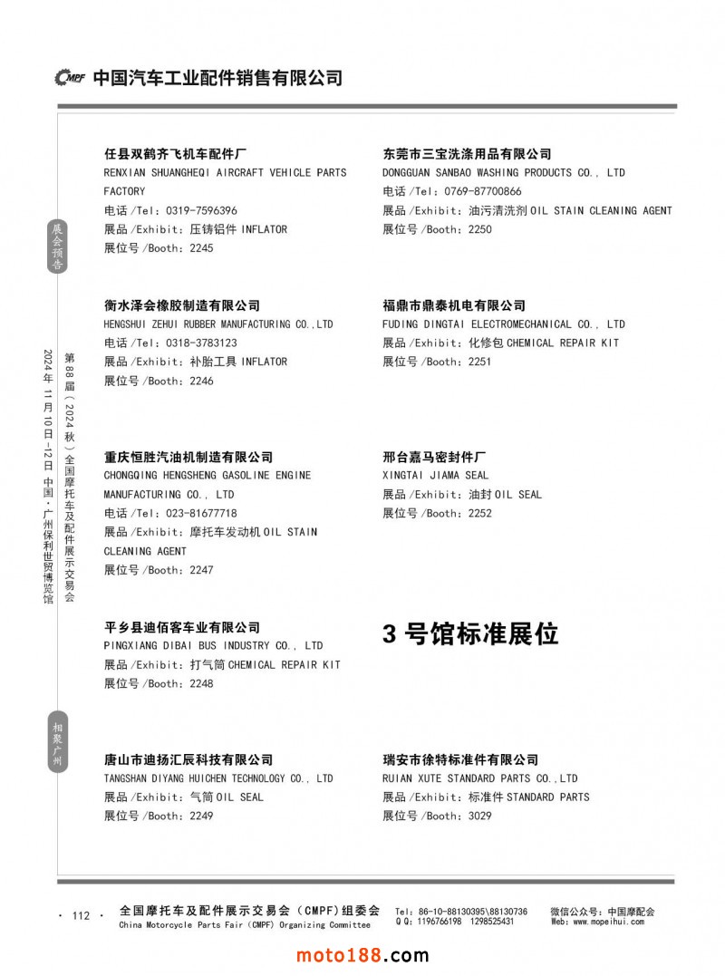 內56-132 第87屆(2024春)全國摩托車及配件展示交易會-石家莊站參展企業(yè)信息