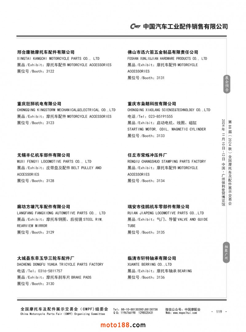 內56-132 第87屆(2024春)全國摩托車及配件展示交易會-石家莊站參展企業(yè)信息