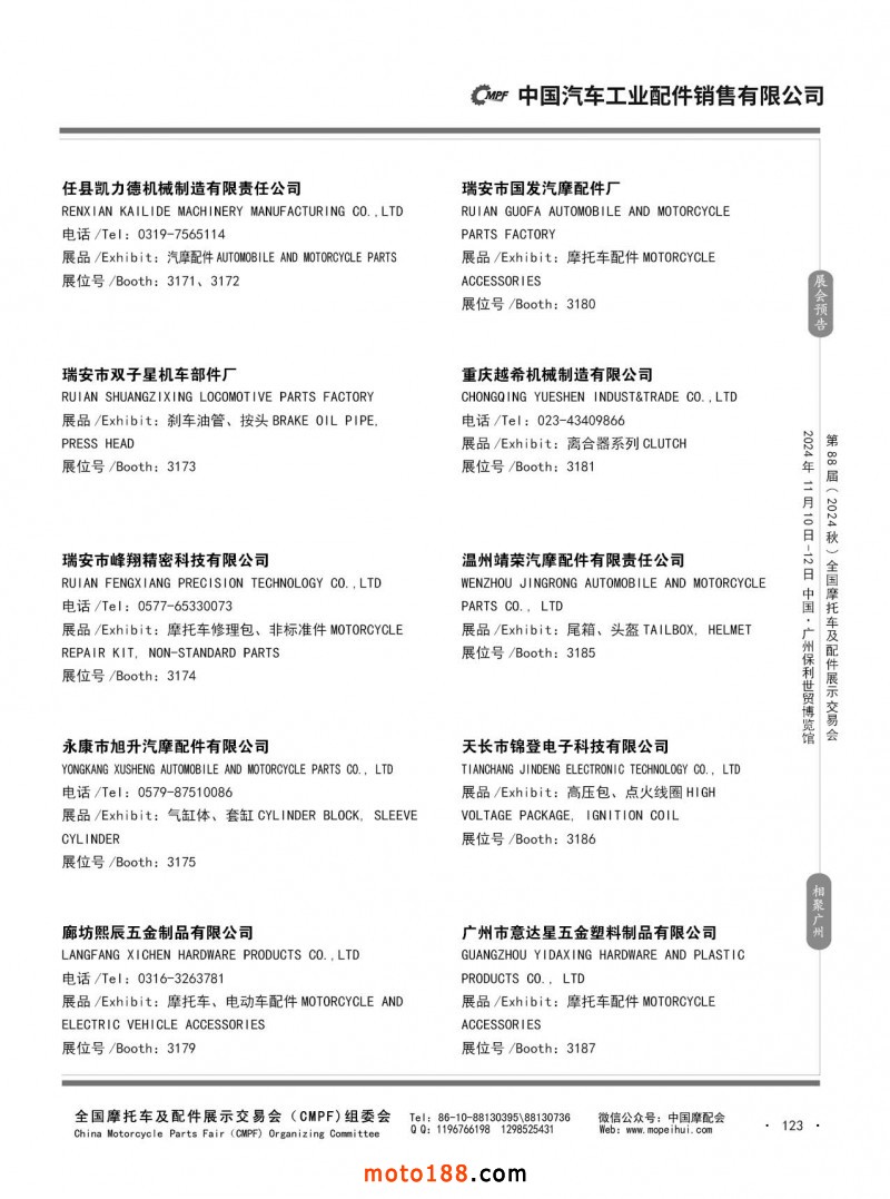 內(nèi)56-132 第87屆(2024春)全國摩托車及配件展示交易會(huì)-石家莊站參展企業(yè)信息