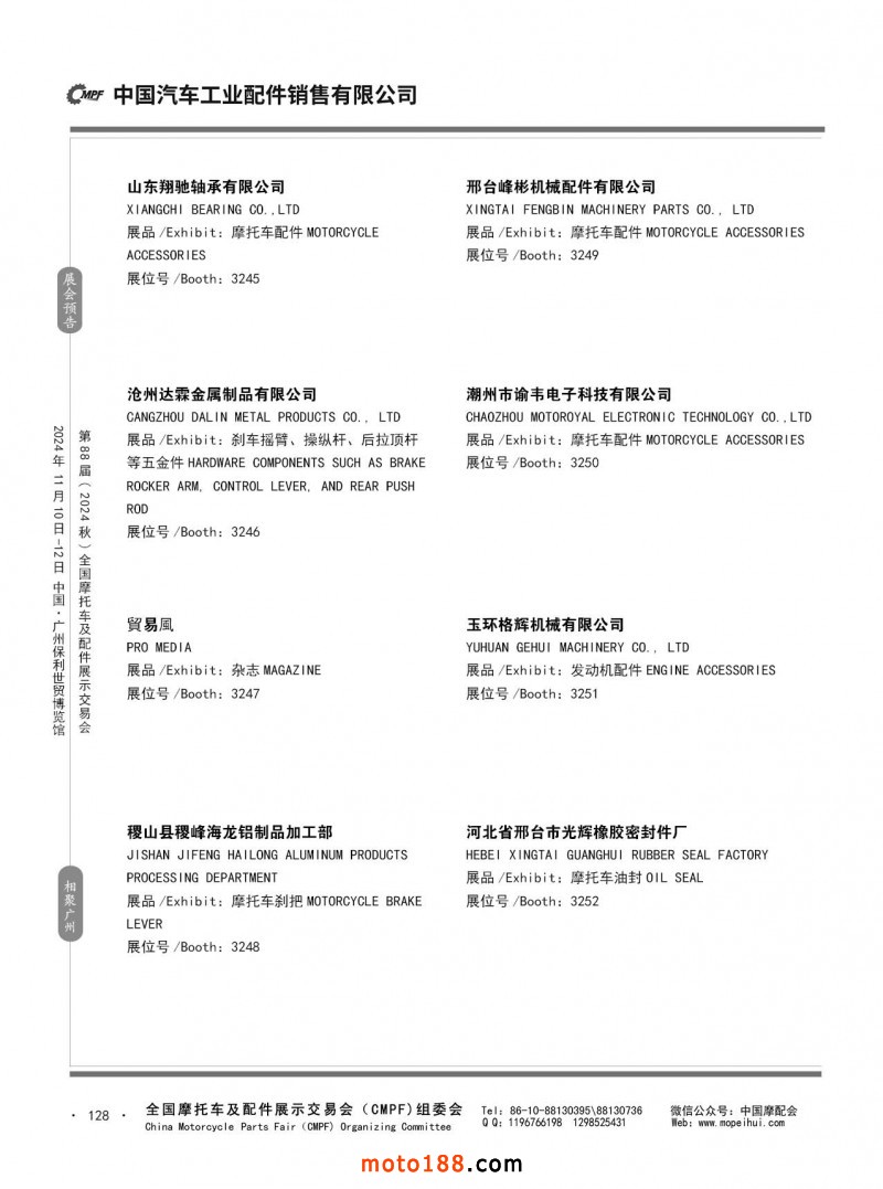 內(nèi)56-132 第87屆(2024春)全國(guó)摩托車及配件展示交易會(huì)-石家莊站參展企業(yè)信息