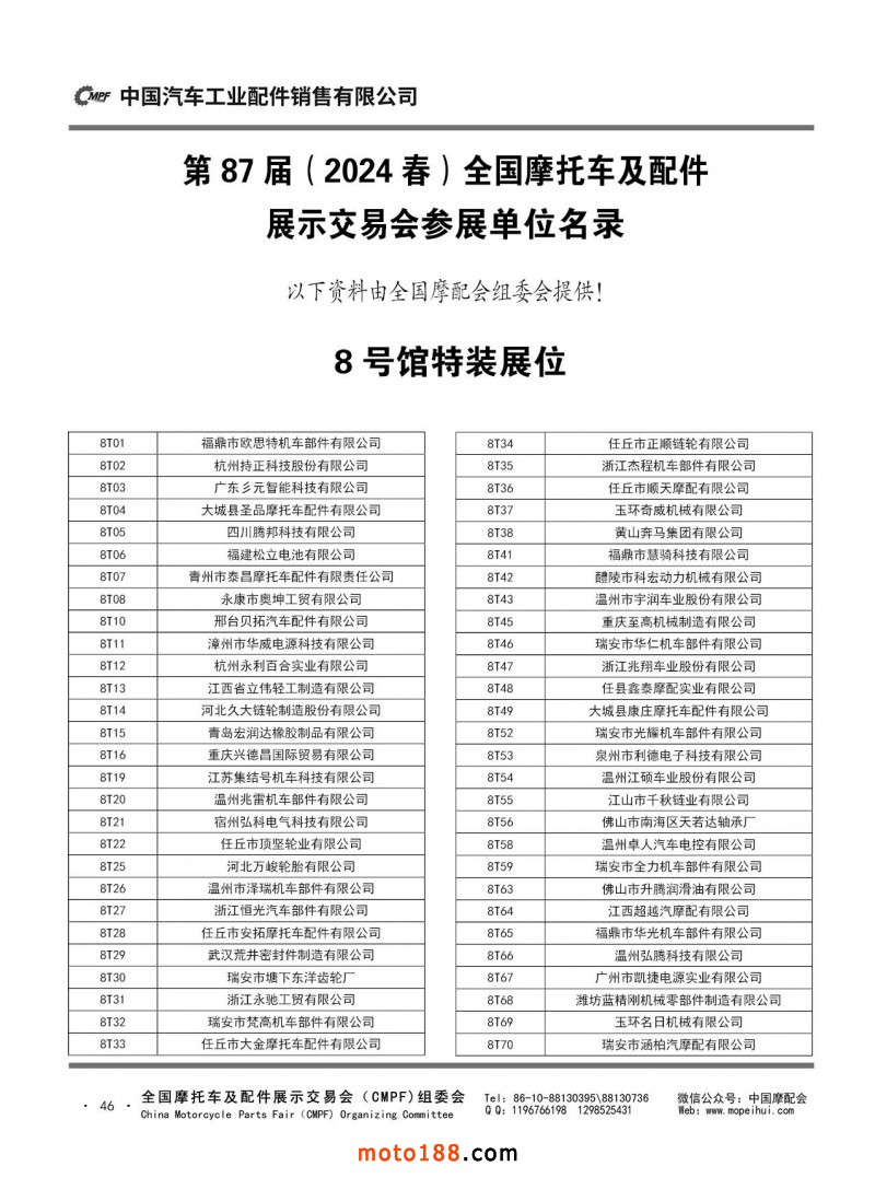 內(nèi)46-55 第87屆(2024春)全國摩托車及配件展示交易會(huì)-石家莊站參展單位名錄