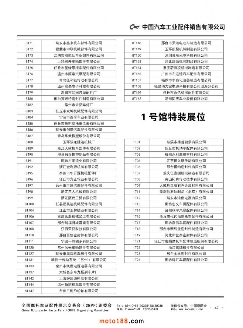 內(nèi)46-55 第87屆(2024春)全國摩托車及配件展示交易會-石家莊站參展單位名錄