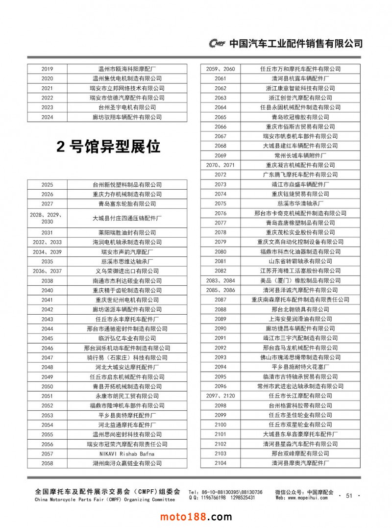 內(nèi)46-55 第87屆(2024春)全國(guó)摩托車及配件展示交易會(huì)-石家莊站參展單位名錄