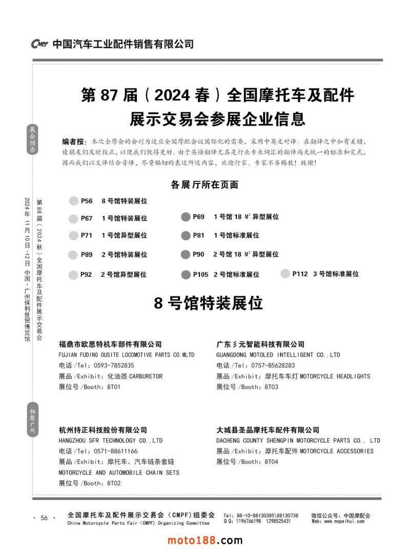 內(nèi)56-132 第87屆(2024春)全國摩托車及配件展示交易會(huì)-石家莊站參展企業(yè)信息