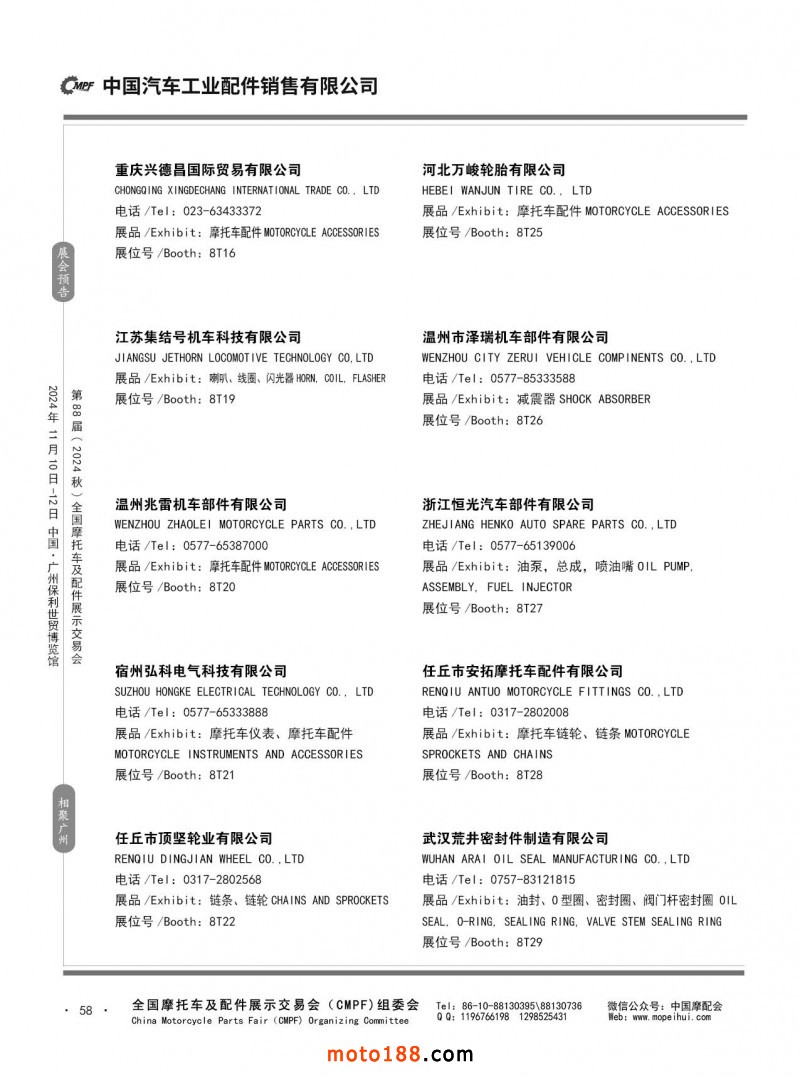 內(nèi)56-132 第87屆(2024春)全國(guó)摩托車(chē)及配件展示交易會(huì)-石家莊站參展企業(yè)信息
