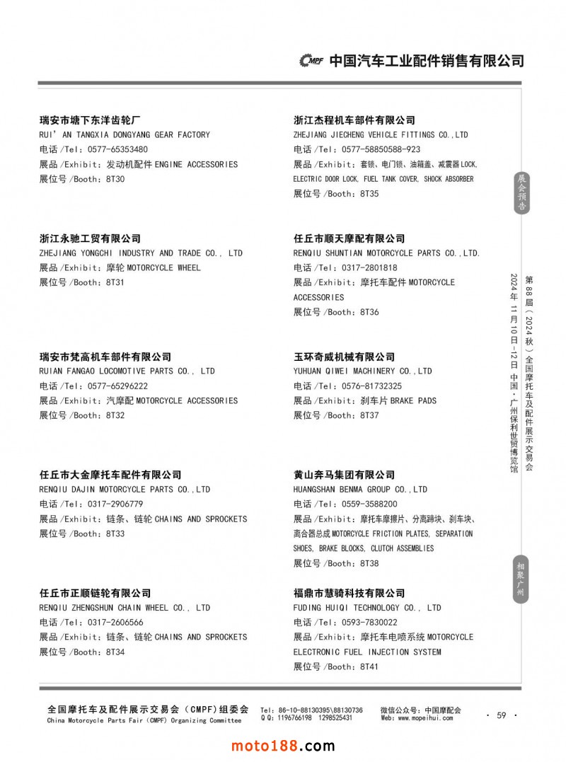 內56-132 第87屆(2024春)全國摩托車及配件展示交易會-石家莊站參展企業(yè)信息