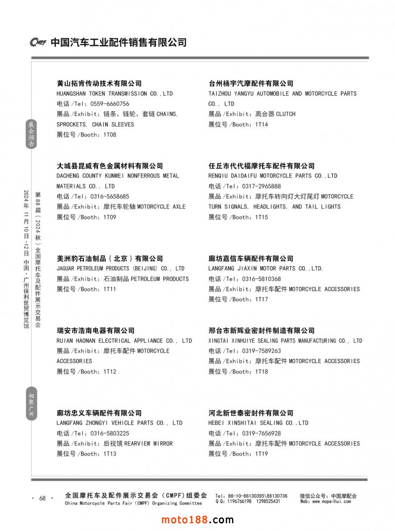 內(nèi)56-132 第87屆(2024春)全國摩托車及配件展示交易會-石家莊站參展企業(yè)信息
