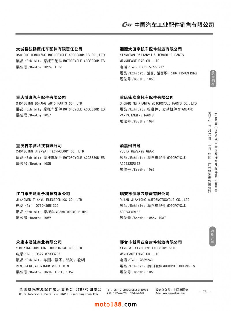 內(nèi)56-132 第87屆(2024春)全國摩托車及配件展示交易會(huì)-石家莊站參展企業(yè)信息