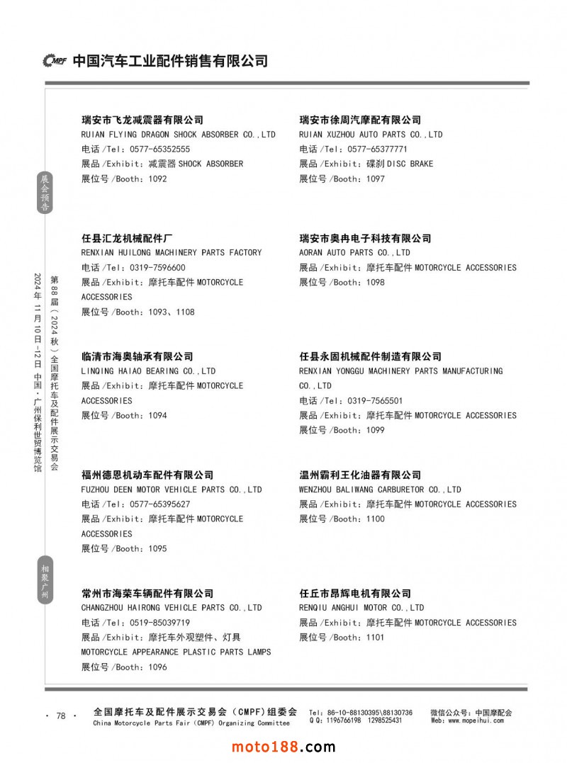 內(nèi)56-132 第87屆(2024春)全國(guó)摩托車及配件展示交易會(huì)-石家莊站參展企業(yè)信息