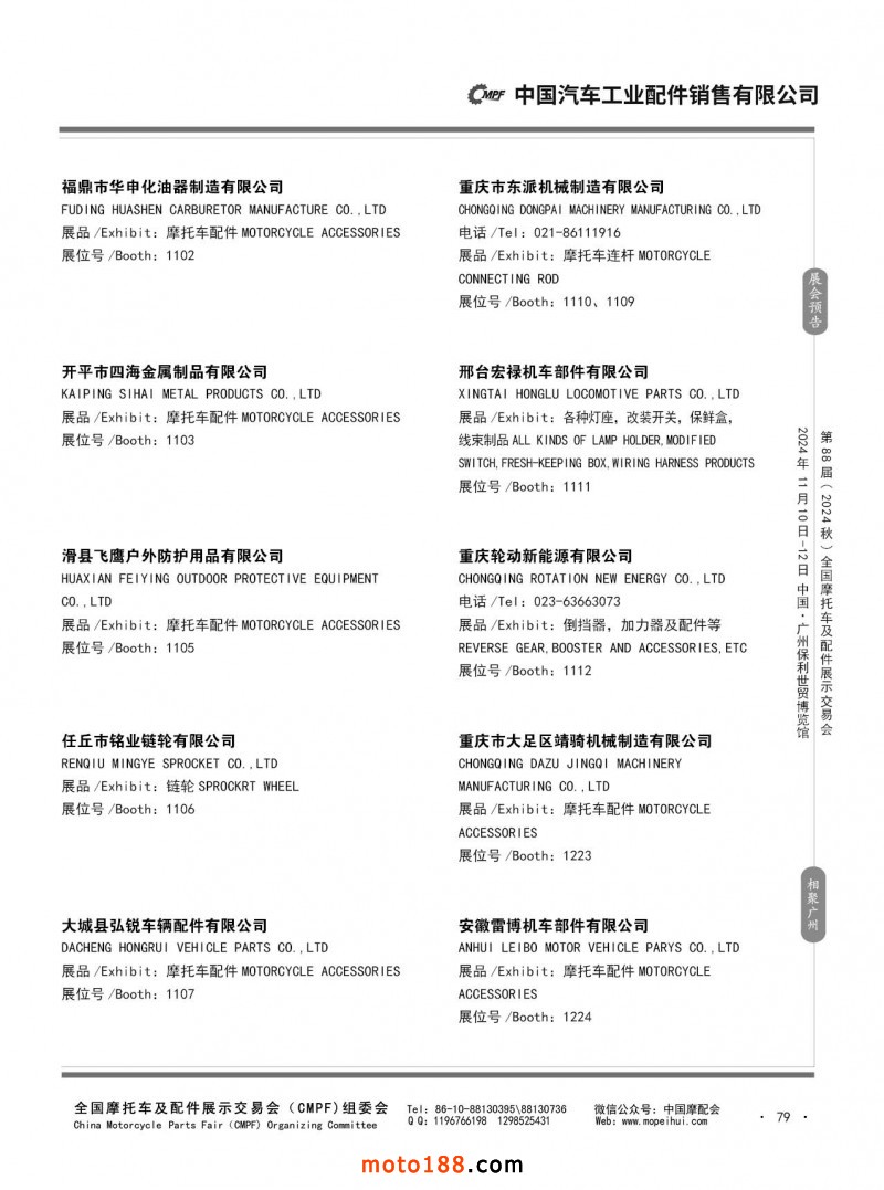 內(nèi)56-132 第87屆(2024春)全國摩托車及配件展示交易會(huì)-石家莊站參展企業(yè)信息