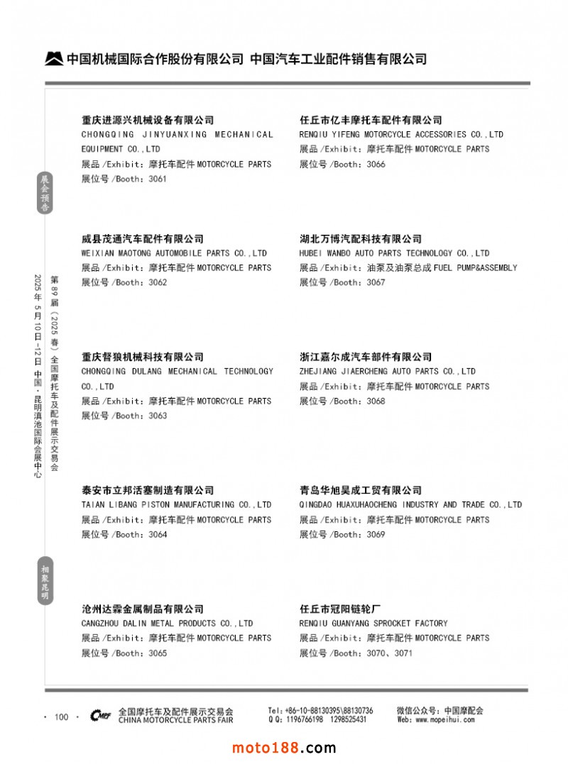 內(nèi)69-188 第88屆(2024秋)全國(guó)摩托車(chē)及配件展示交易會(huì)-廣州站參展企業(yè)信息