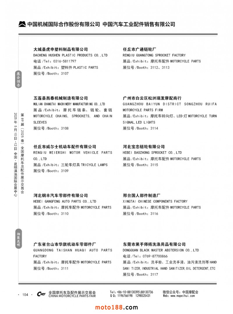 內(nèi)69-188 第88屆(2024秋)全國(guó)摩托車及配件展示交易會(huì)-廣州站參展企業(yè)信息