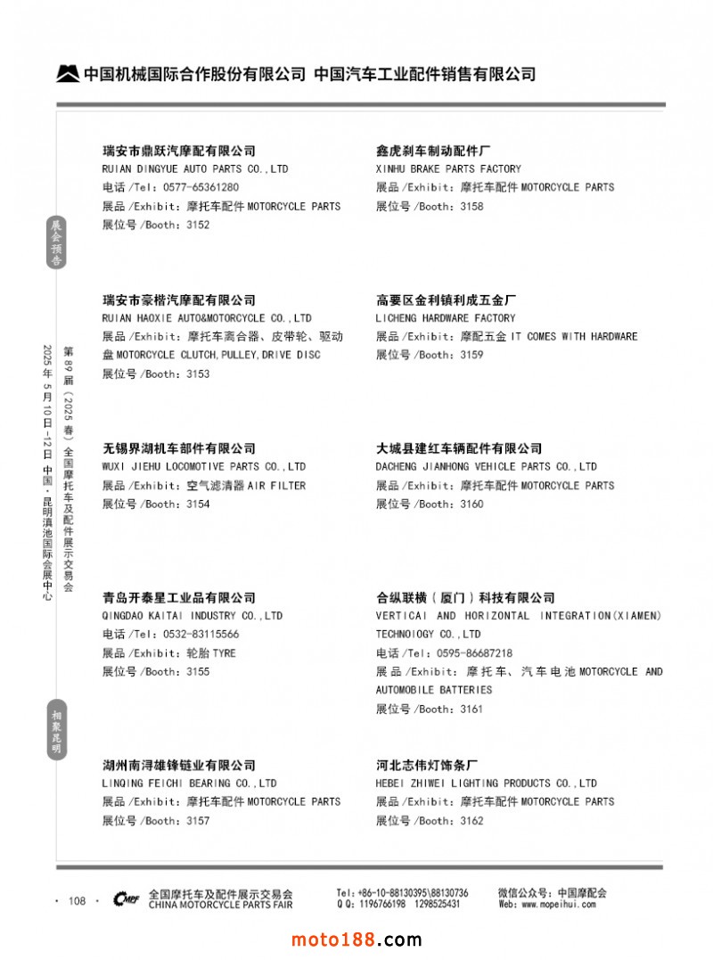 內(nèi)69-188 第88屆(2024秋)全國摩托車及配件展示交易會-廣州站參展企業(yè)信息