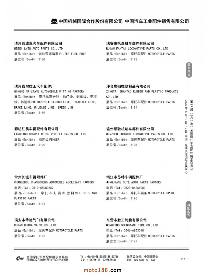 內(nèi)69-188 第88屆(2024秋)全國(guó)摩托車(chē)及配件展示交易會(huì)-廣州站參展企業(yè)信息