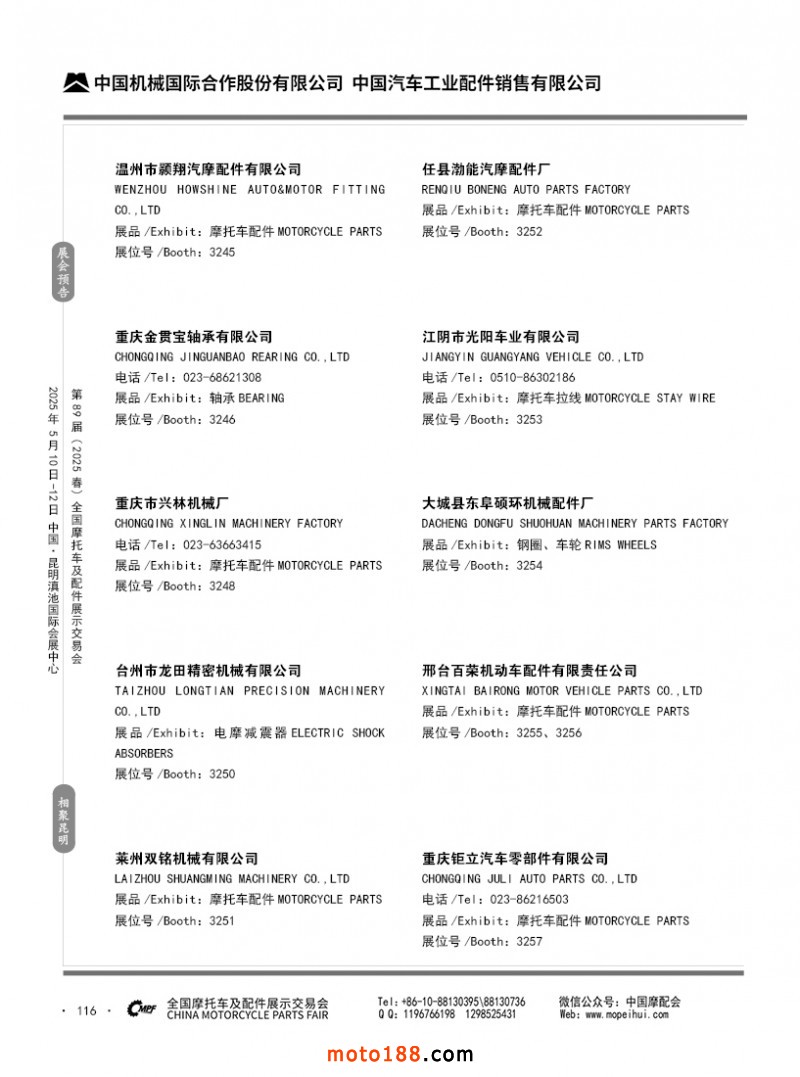 內69-188 第88屆(2024秋)全國摩托車及配件展示交易會-廣州站參展企業(yè)信息