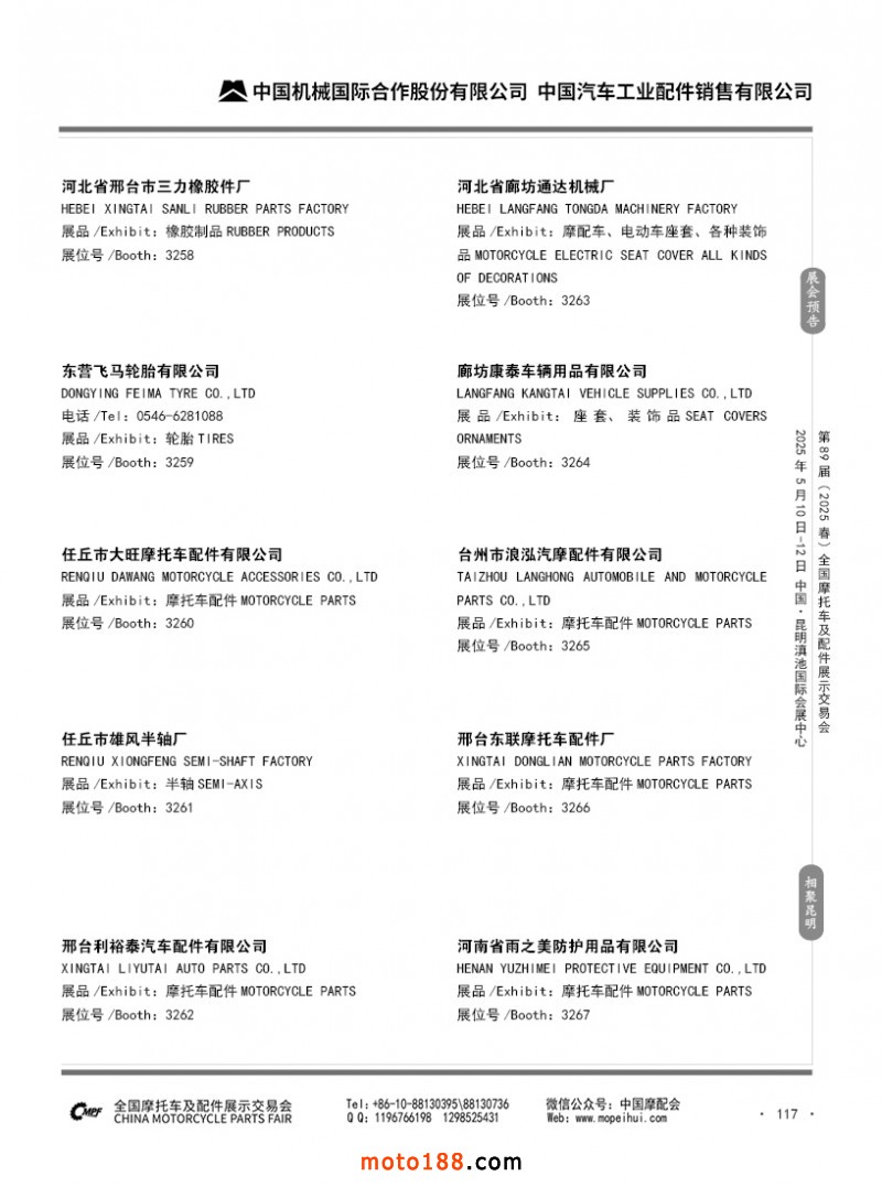 內69-188 第88屆(2024秋)全國摩托車及配件展示交易會-廣州站參展企業(yè)信息