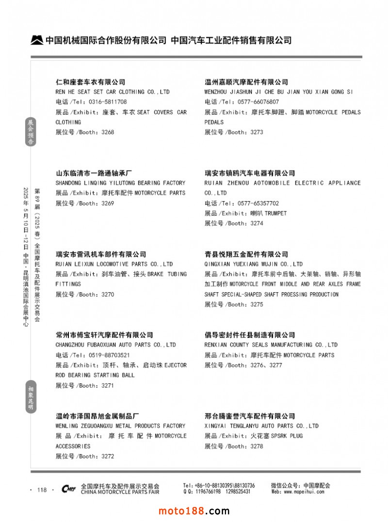 內(nèi)69-188 第88屆(2024秋)全國(guó)摩托車及配件展示交易會(huì)-廣州站參展企業(yè)信息