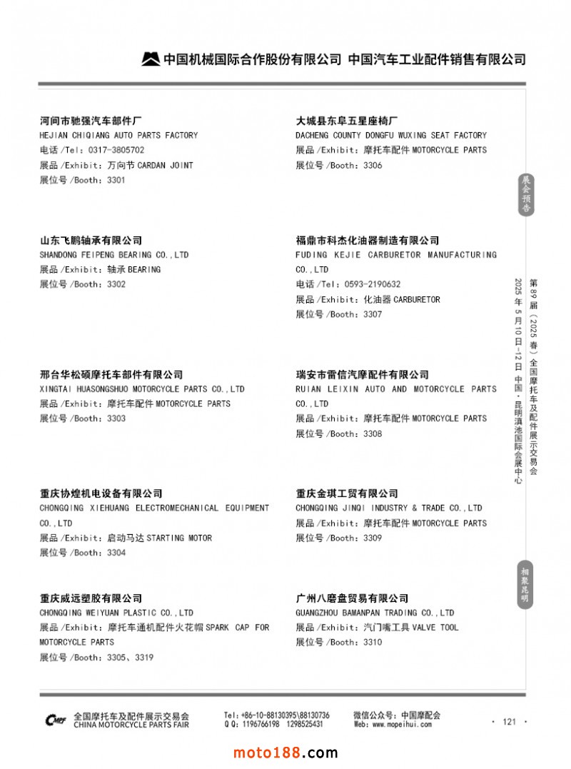 內(nèi)69-188 第88屆(2024秋)全國摩托車及配件展示交易會(huì)-廣州站參展企業(yè)信息