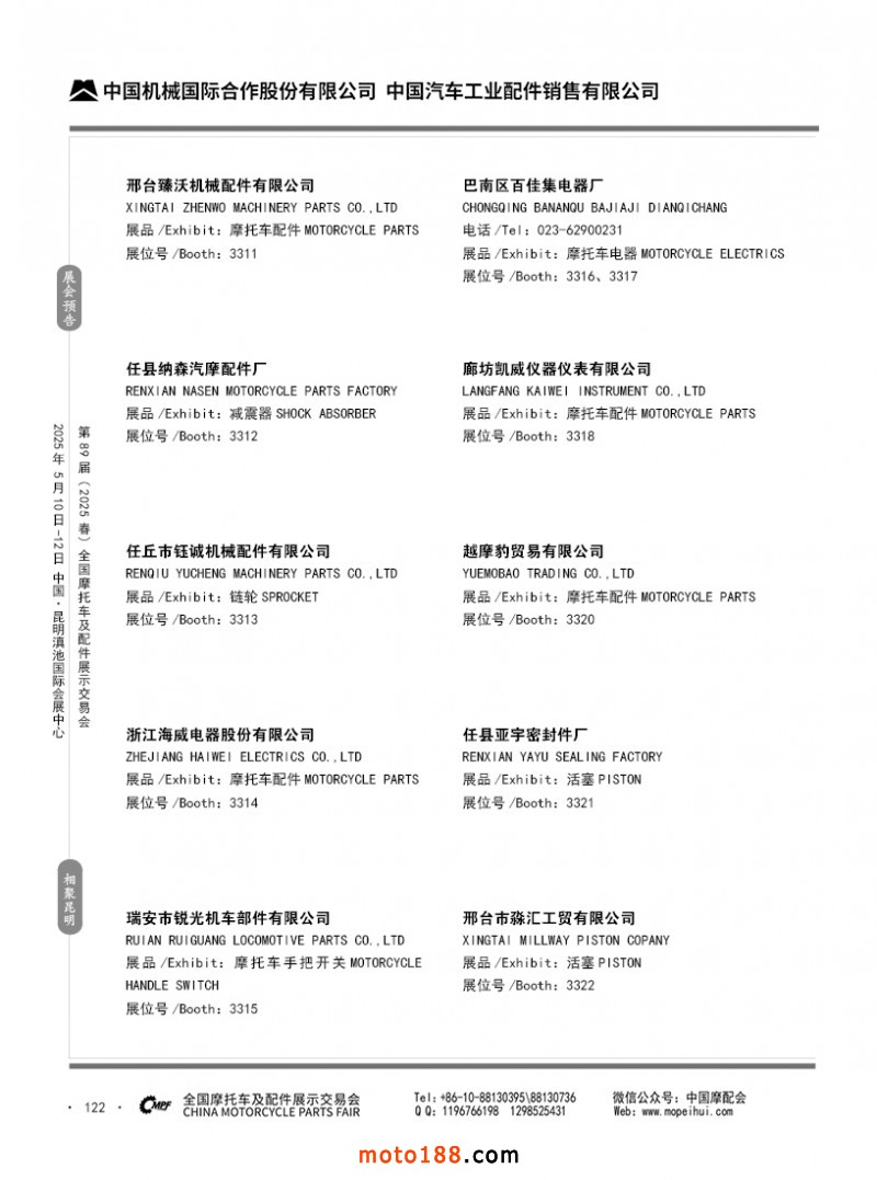 內(nèi)69-188 第88屆(2024秋)全國(guó)摩托車及配件展示交易會(huì)-廣州站參展企業(yè)信息