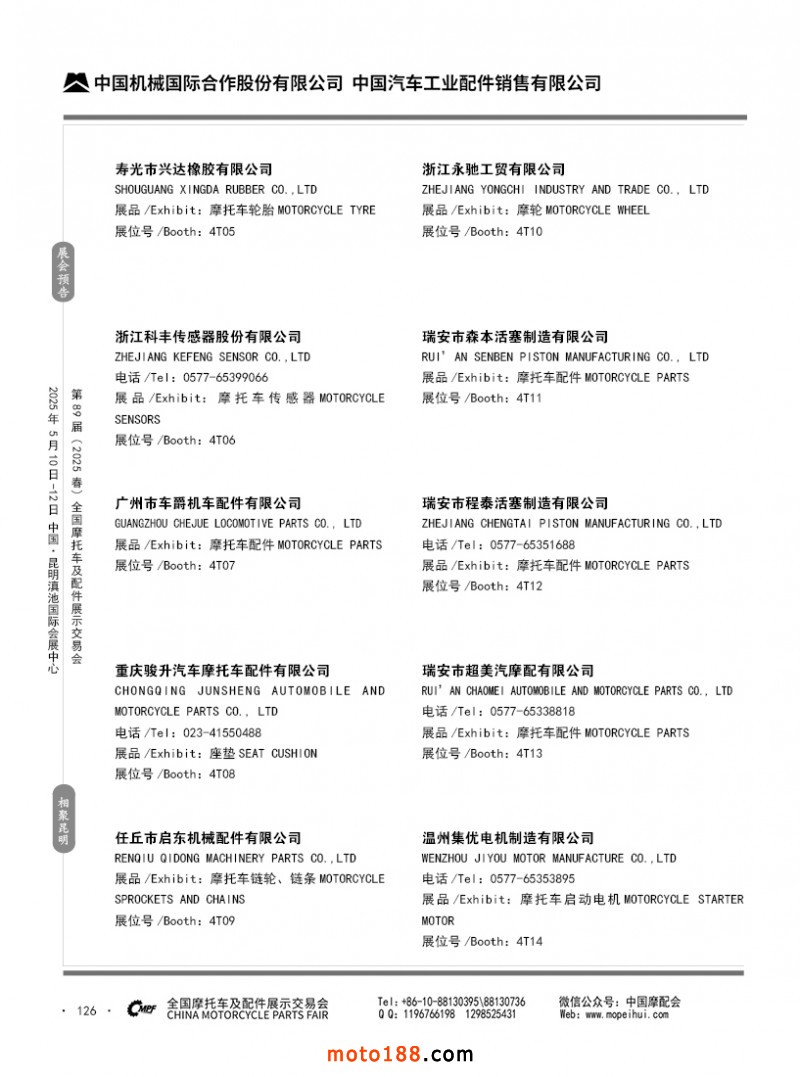 內(nèi)69-188 第88屆(2024秋)全國摩托車及配件展示交易會-廣州站參展企業(yè)信息