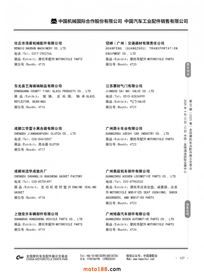 內(nèi)69-188 第88屆(2024秋)全國(guó)摩托車及配件展示交易會(huì)-廣州站參展企業(yè)信息
