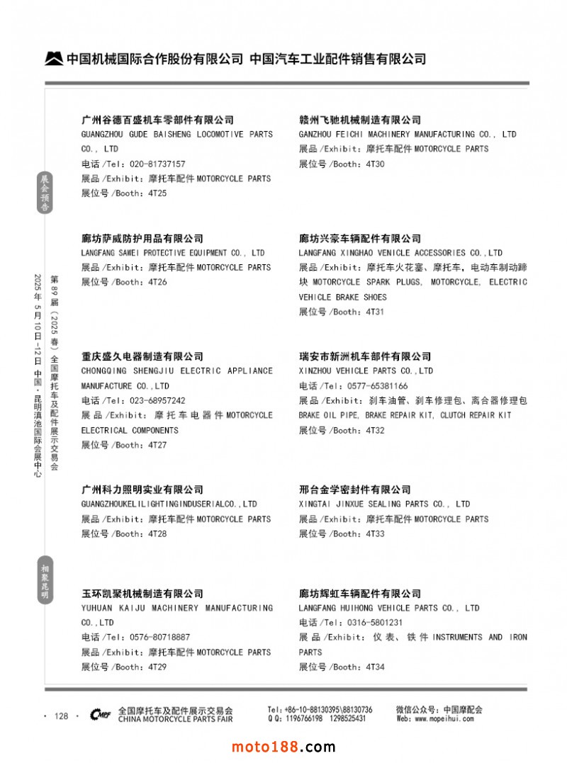 內(nèi)69-188 第88屆(2024秋)全國摩托車及配件展示交易會-廣州站參展企業(yè)信息