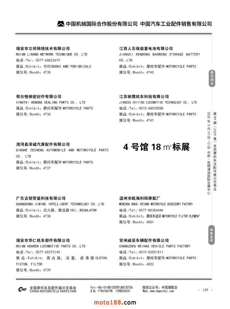 內(nèi)69-188 第88屆(2024秋)全國摩托車及配件展示交易會-廣州站參展企業(yè)信息