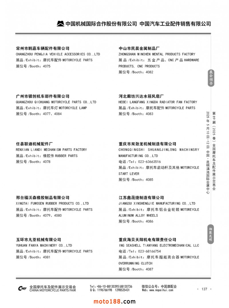 內(nèi)69-188 第88屆(2024秋)全國(guó)摩托車及配件展示交易會(huì)-廣州站參展企業(yè)信息