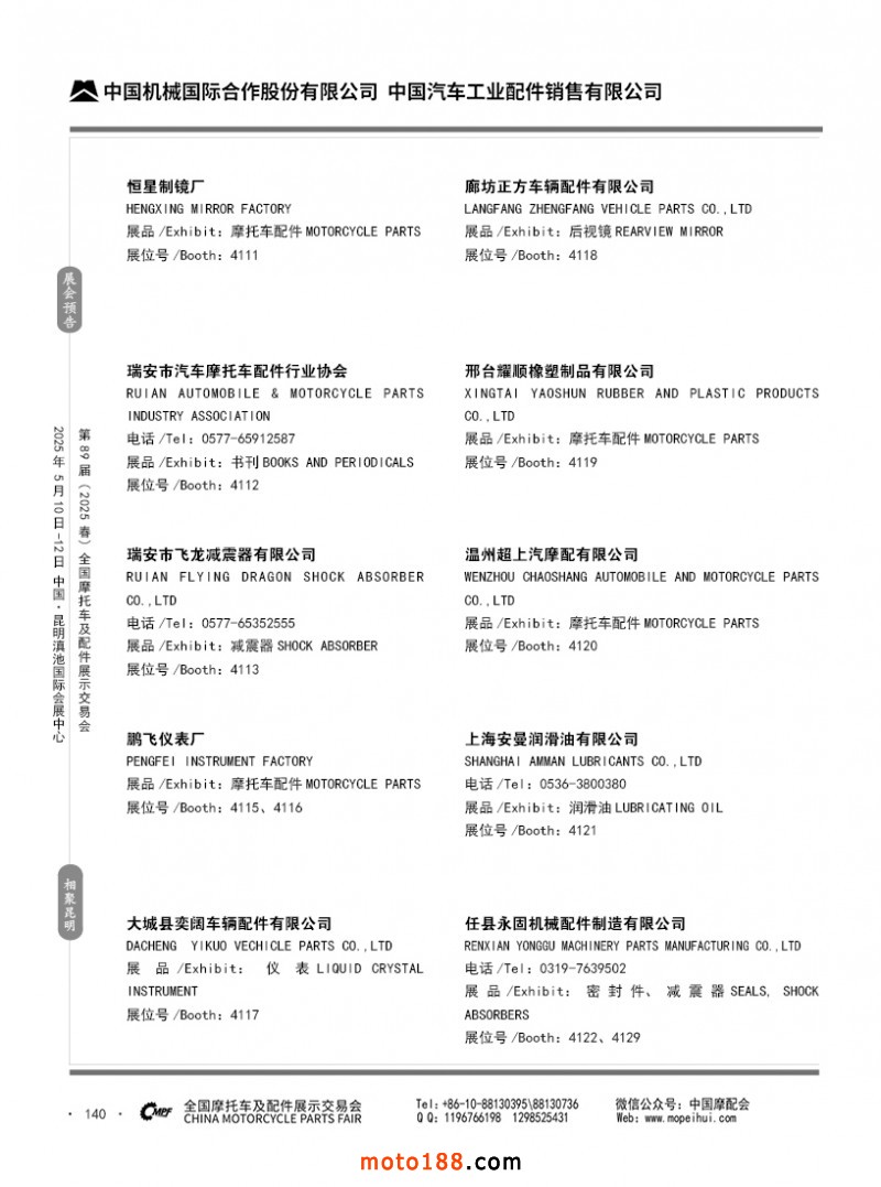 內(nèi)69-188 第88屆(2024秋)全國摩托車及配件展示交易會-廣州站參展企業(yè)信息