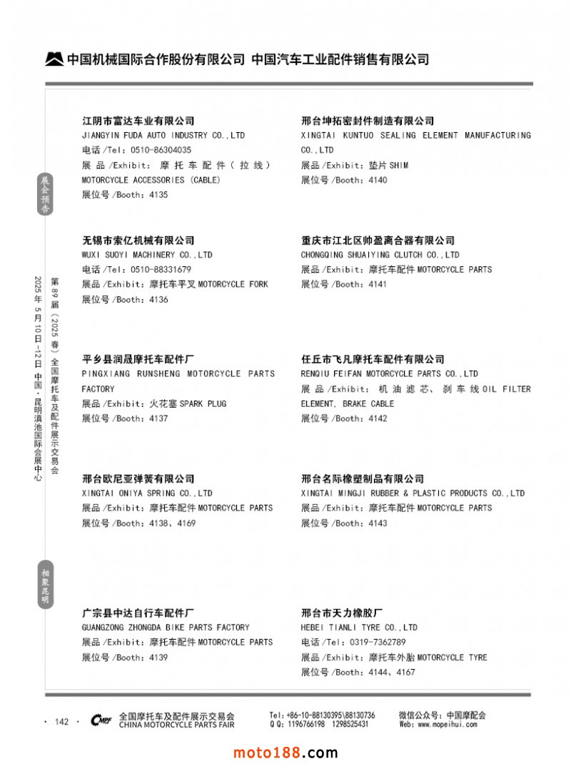 內(nèi)69-188 第88屆(2024秋)全國摩托車及配件展示交易會-廣州站參展企業(yè)信息