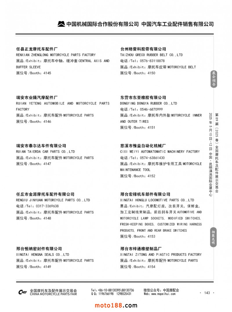 內69-188 第88屆(2024秋)全國摩托車及配件展示交易會-廣州站參展企業(yè)信息
