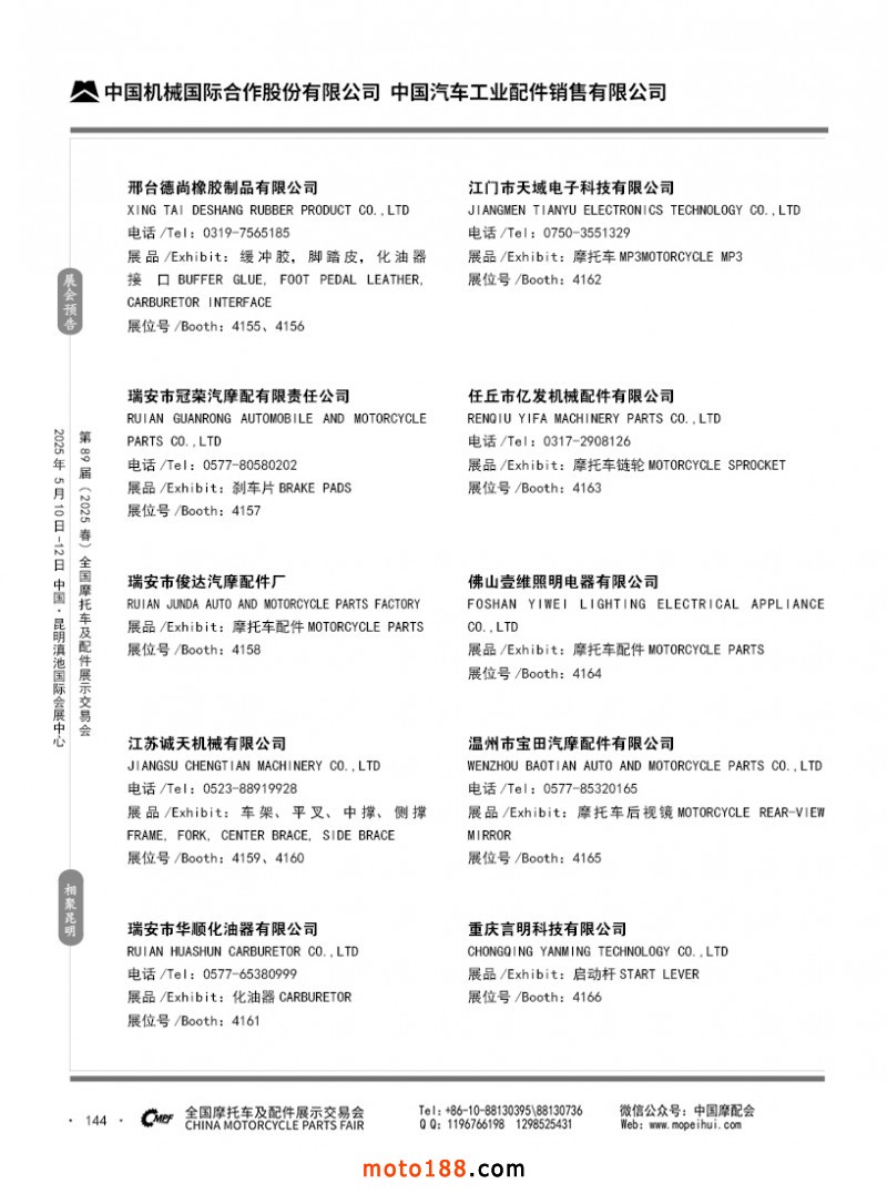 內(nèi)69-188 第88屆(2024秋)全國(guó)摩托車(chē)及配件展示交易會(huì)-廣州站參展企業(yè)信息