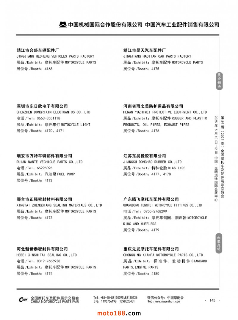 內(nèi)69-188 第88屆(2024秋)全國摩托車及配件展示交易會-廣州站參展企業(yè)信息