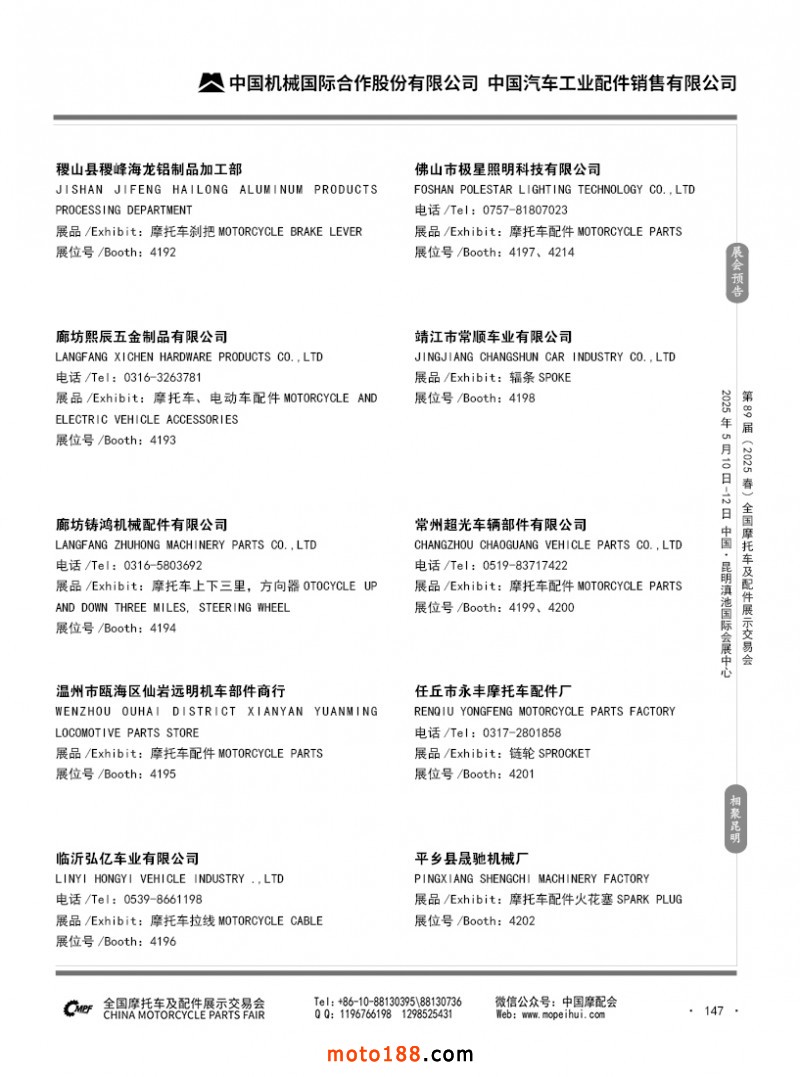 內(nèi)69-188 第88屆(2024秋)全國摩托車及配件展示交易會-廣州站參展企業(yè)信息