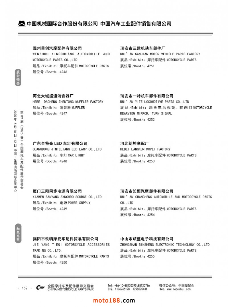 內(nèi)69-188 第88屆(2024秋)全國摩托車及配件展示交易會-廣州站參展企業(yè)信息